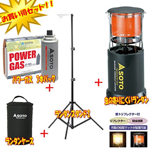 소《도》 SOTO 벌레의 집합 어려운 랜턴(전용 케이스 첨부)+파워 가스 3개 팩+랜턴 스탠드【실속있는 3점 세트】 ST-233CSST-7601NE752