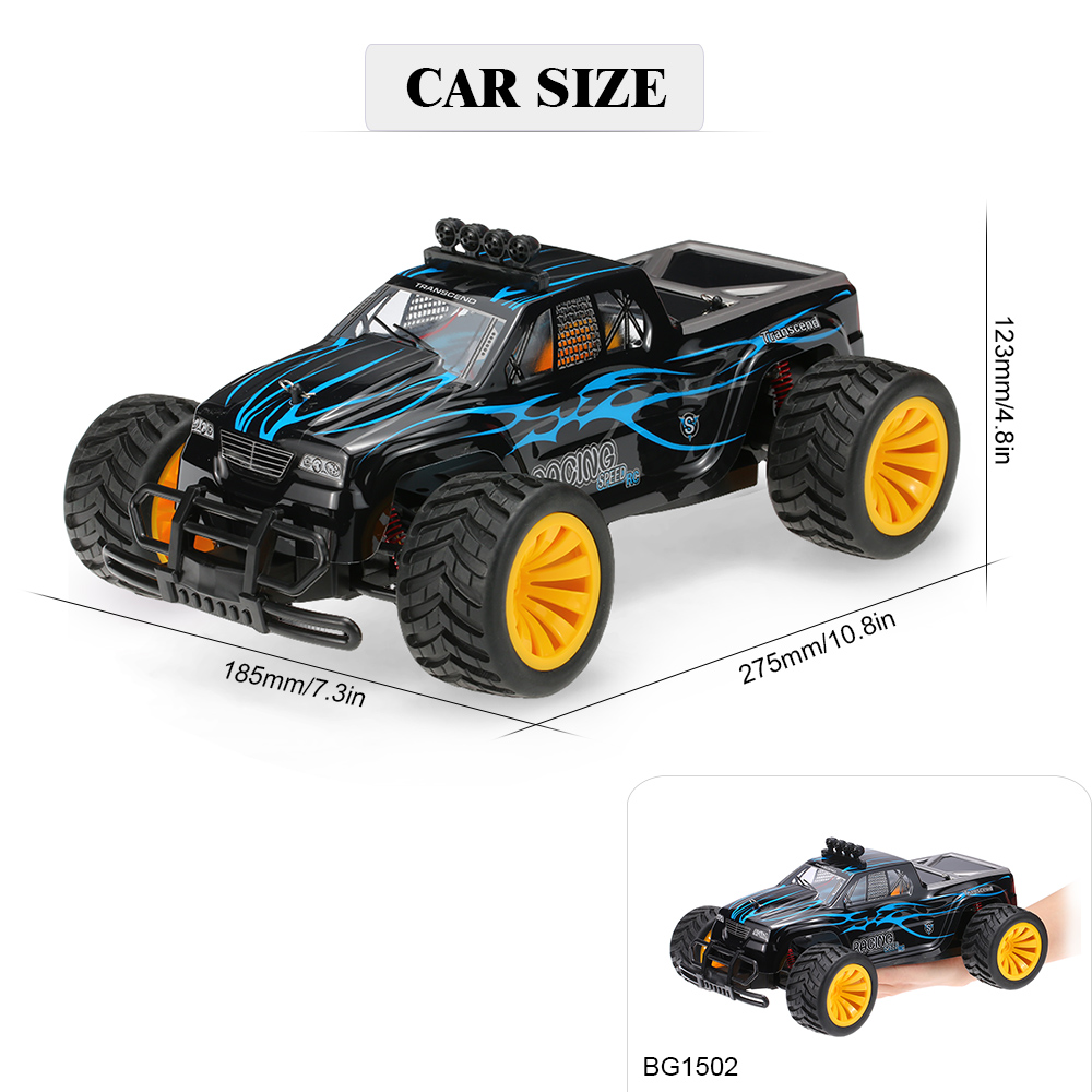 This BG1502 car is made of engineering nylon, and can strengthen the high-speed car's capacity in anti-collision and beat-resistance. Besides, it features a full proportion 1/16 scale racing car design, equipped with a 2.4GHz control system ready to race, two-wheel independent suspension system and shock absorbers, which can steadily move forward and backward, turn left and right. Just get it at once and enjoy the fun!