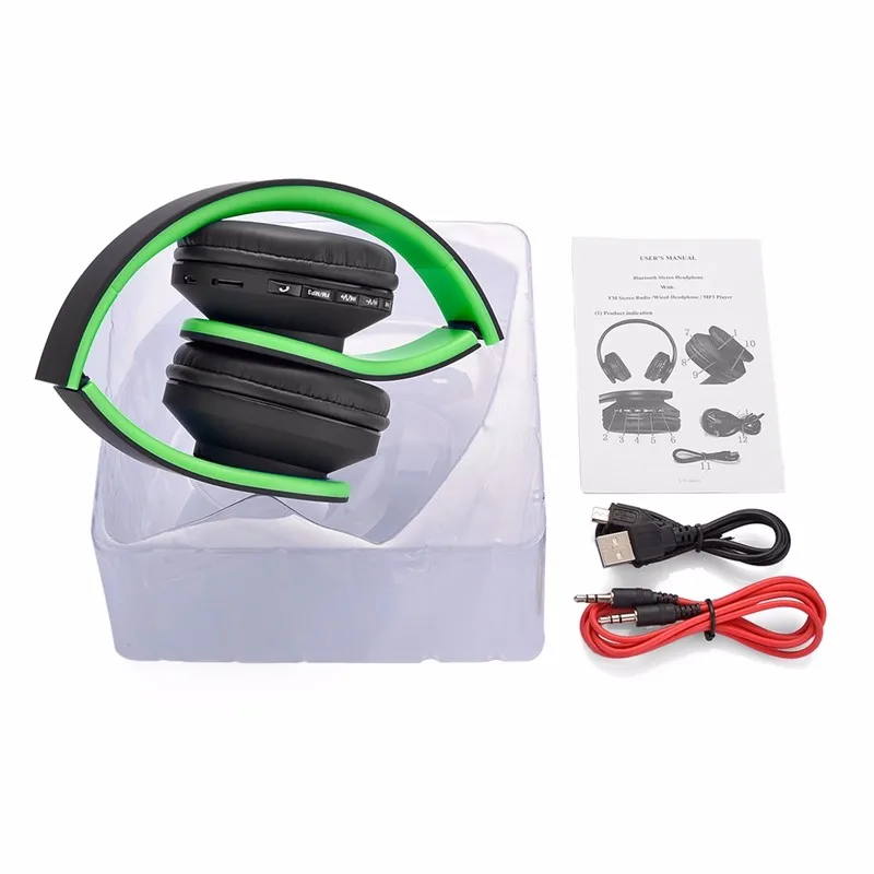 -4 in 1 Multifunctional stereo Bluetooth Headphone: Wireless Stereo Bluetooth + Card MP3 player + FM Radio + Wired Headset function.