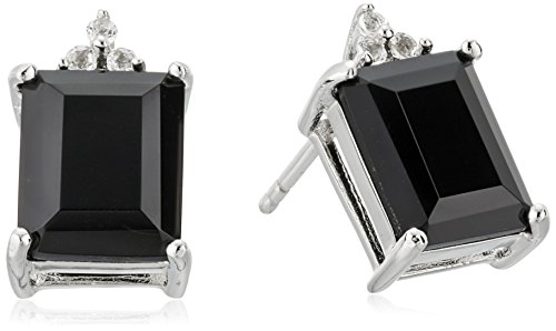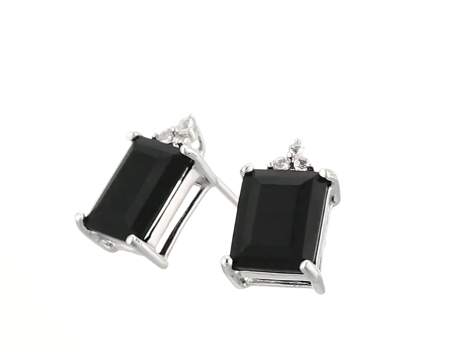 Onyx and White Topaz Rectangle Sterling Silver Stud Earrings