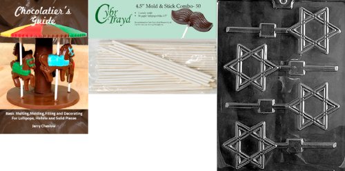 Cybrtrayd Star of David Lolly Chocolate Candy Mold with 50 4.5-Inch Lollipop Sticks and Chocolatier's Guide