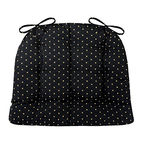 -. Title : Dining Chair Pad with Ties - Tiffanie Diamond Brocade with Embroidered Dobby Accent - Reversible, Latex Foam Fill, Tufted Cushion, Box Edges (Black, Standard)