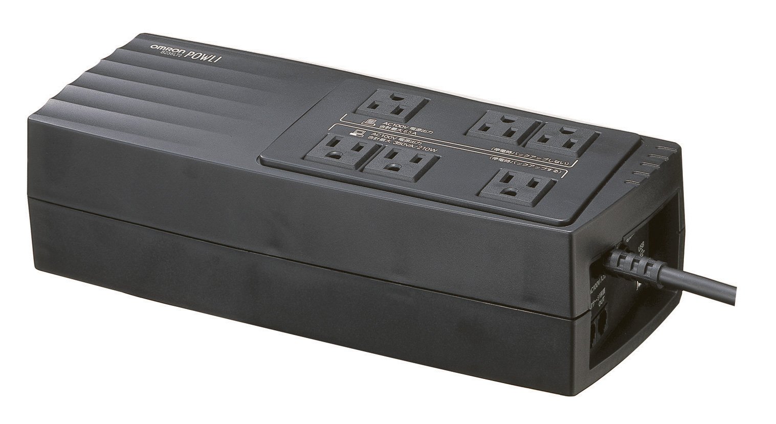 Uninterruptible power supply (UPS) Always commercial power supply method Square wave output (at backup) Output capacity (350 VA / 210 W) Long life (4 to 5 years) Battery rectangular wave output (at backup) Number of output outlets (backup output 3 /