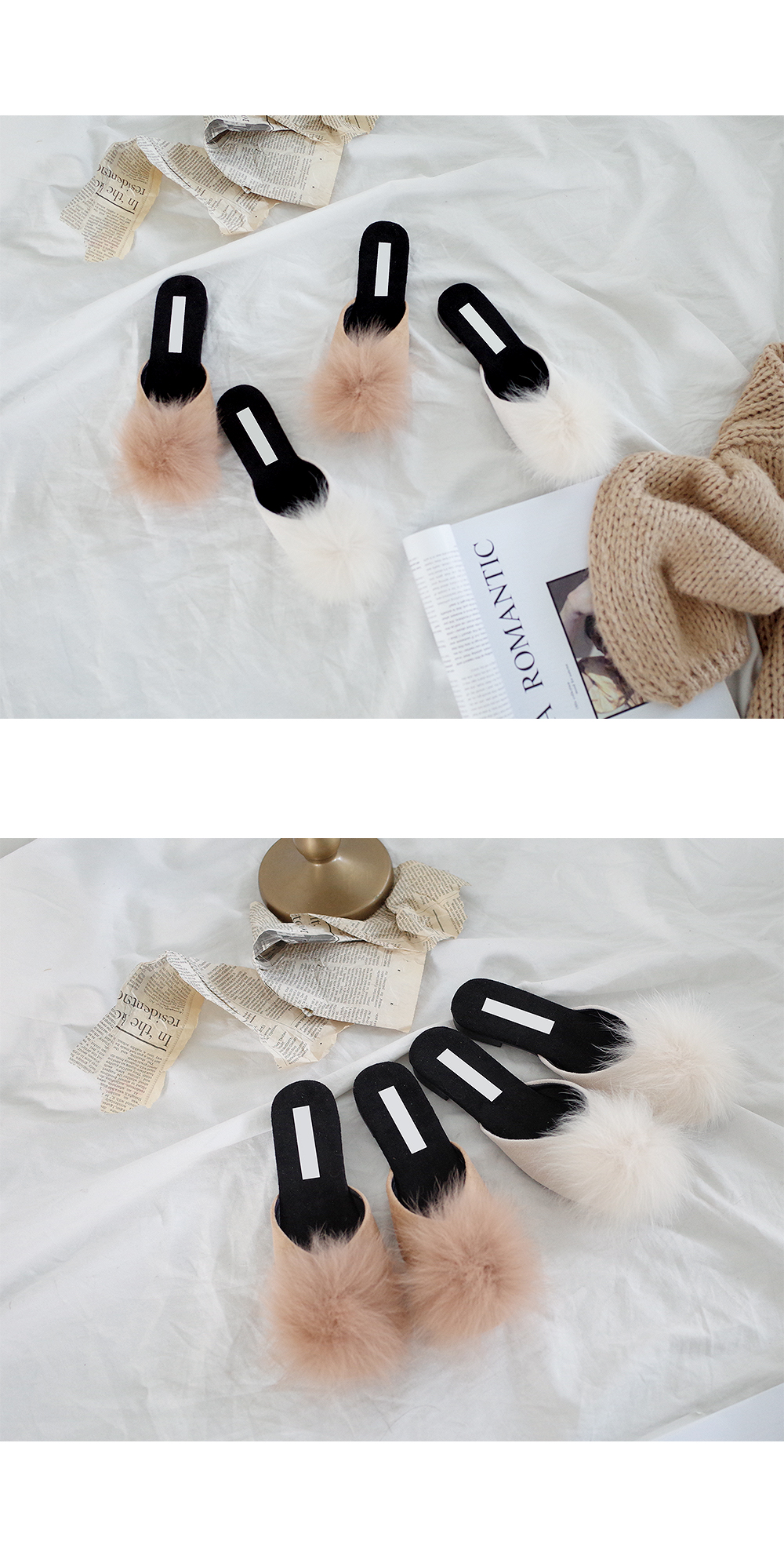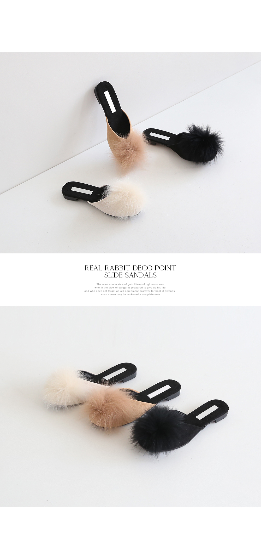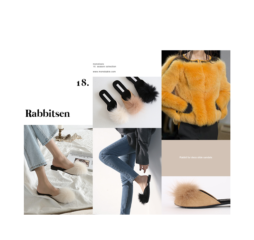 Real rabbit fur slide sandals.