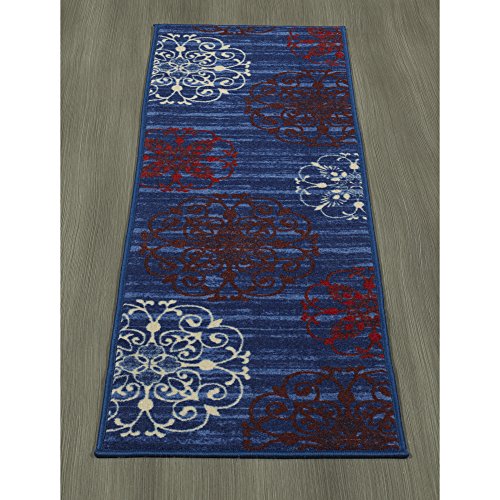 Ottomanson Studio Collection Modern Medallion Design 20"X59" Runner Rug Area, 20" x 59", Blue