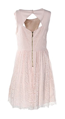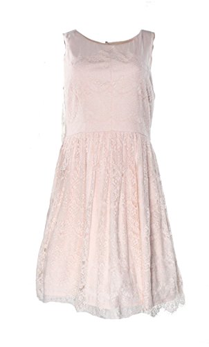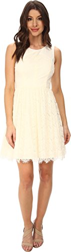Sleeveless dress in fit-and-flare silhouette featuring lace overlay with illusion cutwork hem and solid yokes