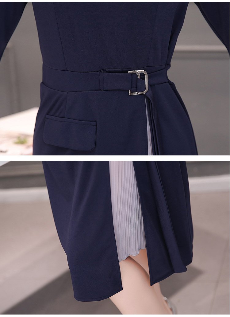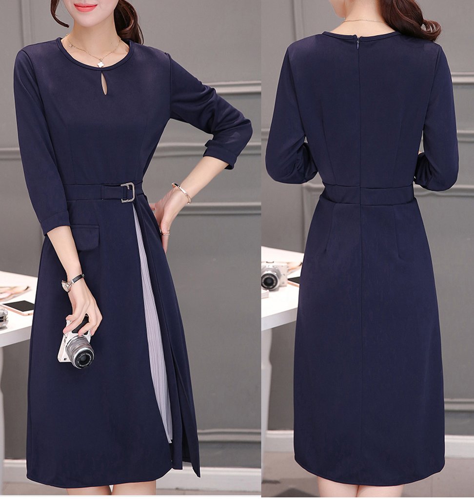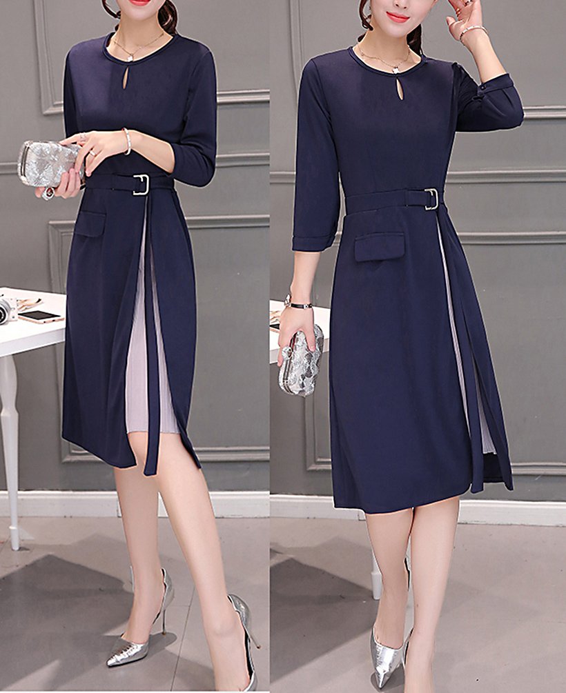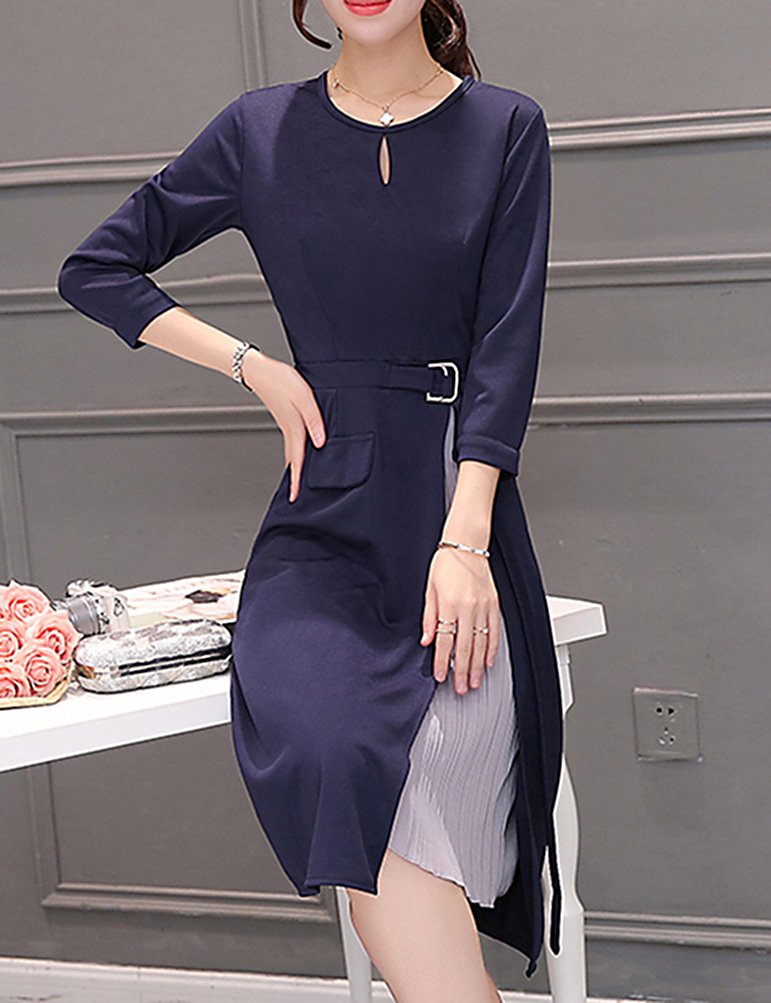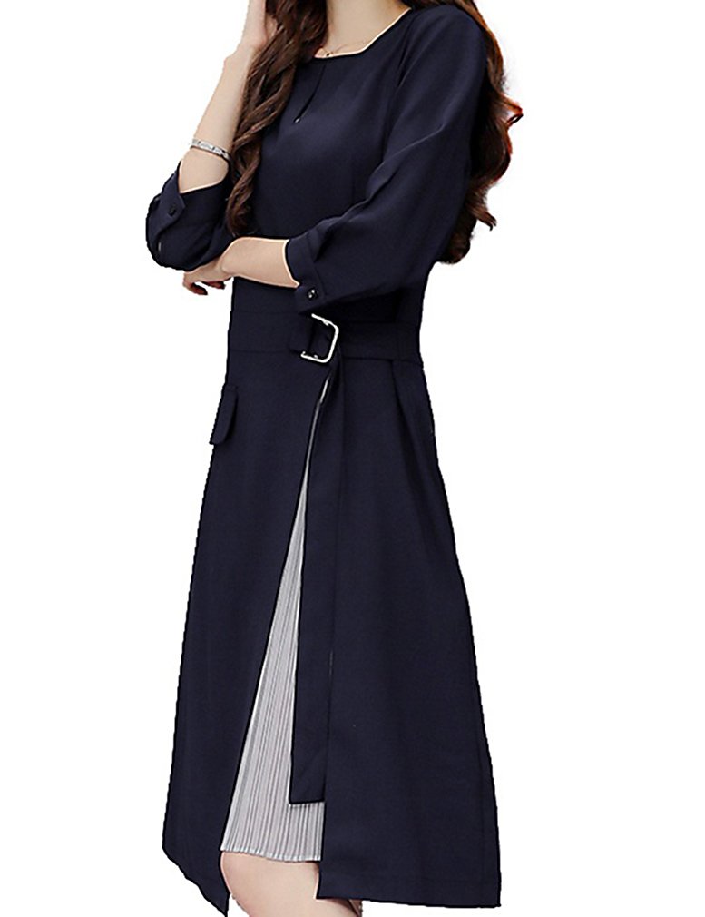 BolanVerl Women's Elegant Formal Switch One Piece Dress Knee Length 3/4 Sleeveless Pleated Layered Style Waist Ribbon Slit Pocket Navy Navy Wedding Party Called Office S M L XL 2 X L 3 X L
