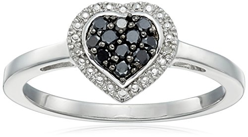 Sterling Silver Black and White Diamond Heart Ring (1/10cttw, I-J Color, I2-I3 Clarity), Size 7