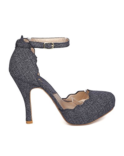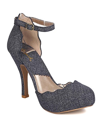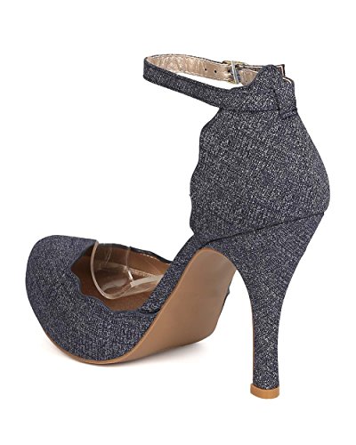 Women Denim Scalloped d'Orsay Stiletto Heel - Dressy, Party, Girly - Ankle Strap Pump - GB94 By...