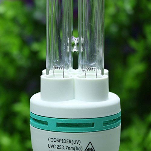 Studio : Coospider Publisher : Coospider Product Description Ultraviolet technology is a non-chemical approach to disinfection UV Germicidal CFL Lamp 120v 25w, All the bulbs are checked before delivery, so there looks something stain on the inside light tube (Mercury). The lamp ideal for 0-400 sq ft house. and 15-60 minutes per week is recommended High Transparent T5 (5/8inch) Quartz tube, keep the lamp High UV emitting and very little Ozone, after sterilizer, there smells Sunglow smell Pet/ People/ Plant AVOID directly exposed under UV-C irradiation. And the UV-Ray will fade the colorful Furniture Clothes Picture etc.. After used, please Well packed and keep out of children's reach Bathroom, kitchen, bedroom, living room, dining room, office, Dog cat pet cage, disinfect and Clean by sanitizer to remove the smell Screw the UV-Light-Bulb Directly in Medium Screw-Socket(E26/E27) ,and Turn on the Light (No need any Additional Ballast)