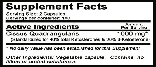 -. Title : Cissus Quadrangularis, 200 count 500mg Vegetarian capsule, 40% total ketosterones, 20% 3-ketosterone