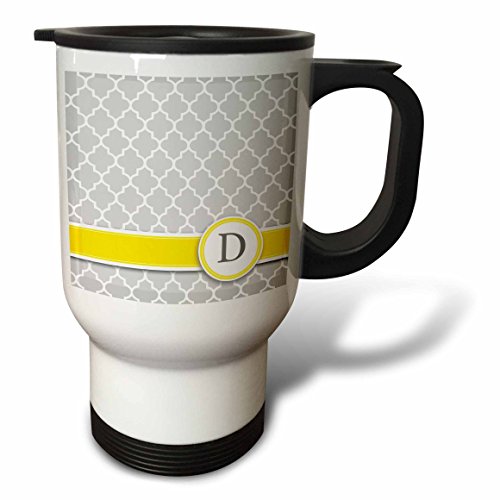 3dRose Your Personal Name Initial Letter D-Monogrammed Grey Quatrefoil Pattern Travel Mug, 14-Ounce