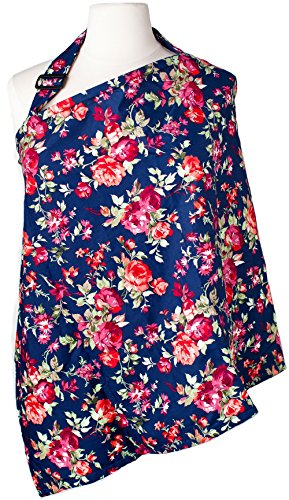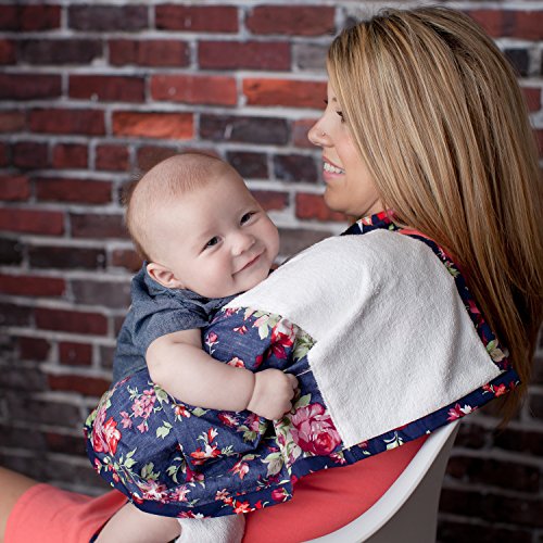 Vintage Navy Floral Nursing Cover with Sewn In Burp Cloth for Breastfeeding Infants and Matching Pouch- Best Apron Cover Up for Breast Feeding Babies |...