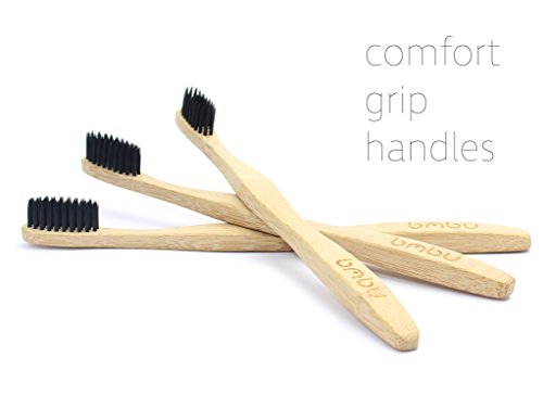 Bamboo Toothbrush 3 Pack - Made with Bamboo Charcoal Infused Bristles - Sustainably Grown in Recycled Biodegradable Packaging
