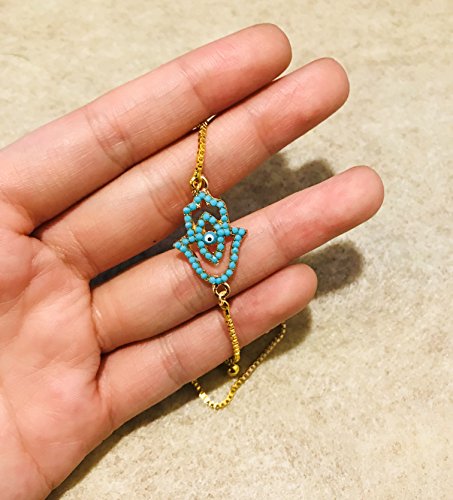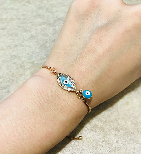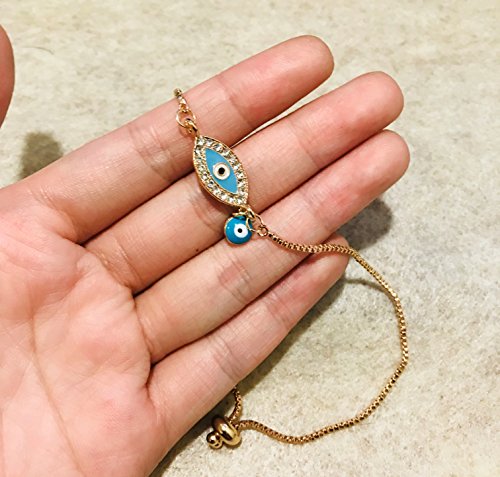 -. Title : Gold Plated Adjustable Link Chain with Healing Crystal Evil Eye Hamsa Hand Charms Bracelet for Women and Girls
