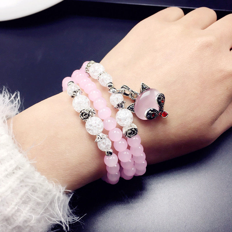 玛瑙水晶蓝砂石猫眼石时尚韩版多层串珠女狐狸转运辟邪手链