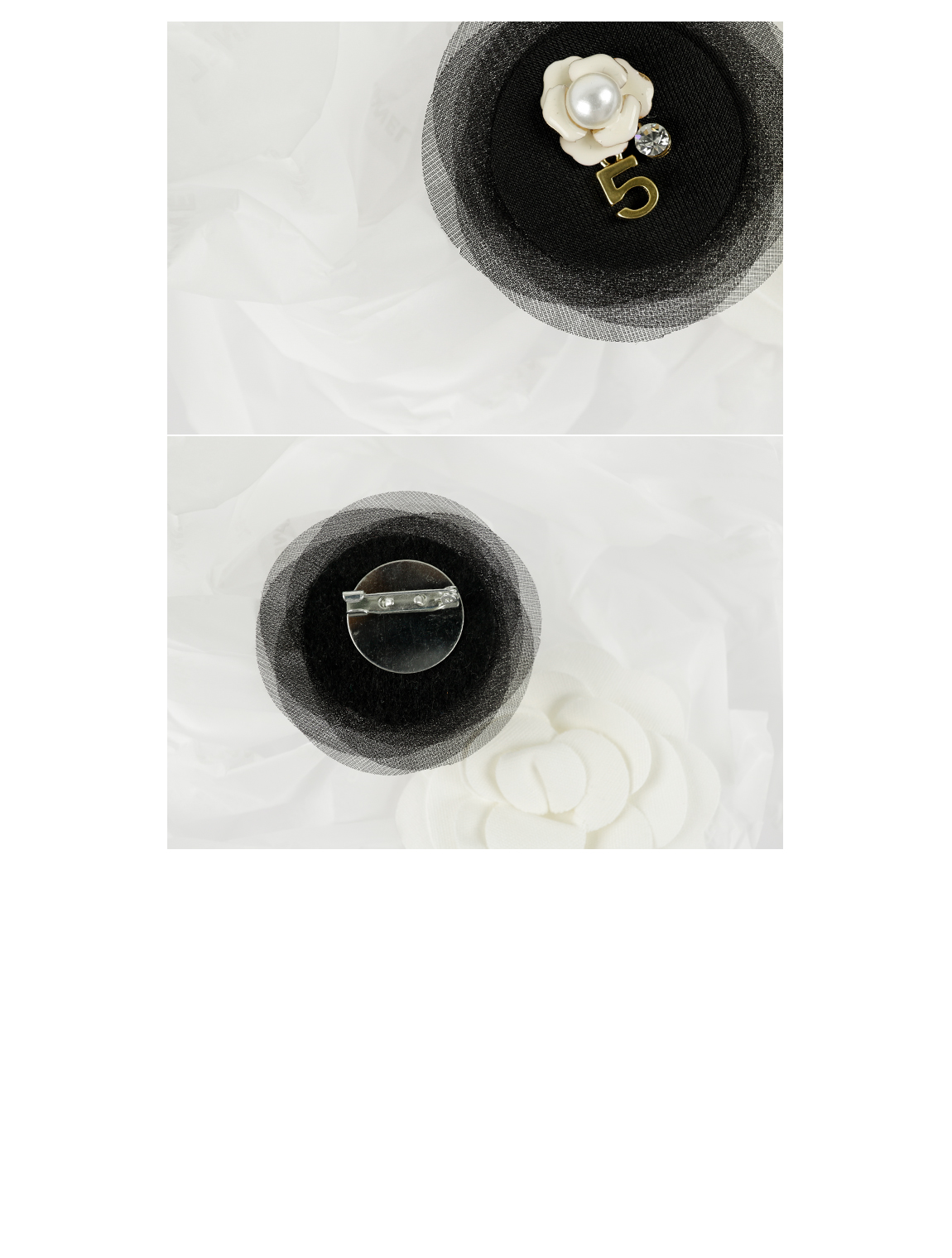 網目材質の素材の上にフラワーモチーフに