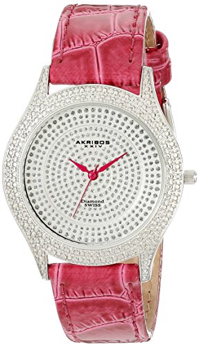 -. Title : Akribos XXIV Women's AKR464PU "Brillianaire" Diamond-Accented Stainless Steel Watch with Pink Leather Band