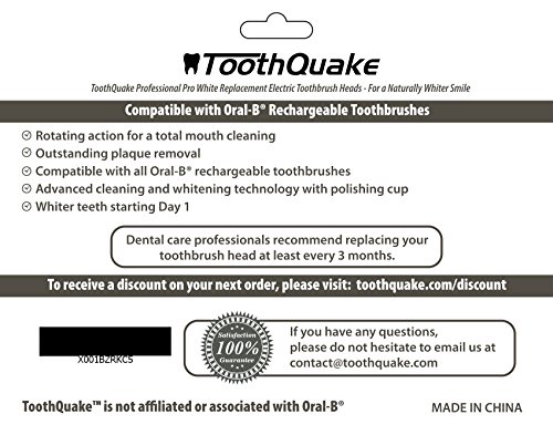 ✅ HIGHEST QUALITY ORAL-B PROFESSIONAL PRO WHITE TOOTHBRUSH HEADS FOR ORAL B - GUARANTEED ✅ ToothQuake® is the only brand that offers the same quality as Oral B Braun prowhite brush head replacements for a fraction of the price. All of our products come with a complete 100% satisfaction guarantee. Upon purchasing, you will receive emails from us to help facilitate this and work out any issues you may possibly have with our products. If you are unhappy with our product, you won't pay for it.