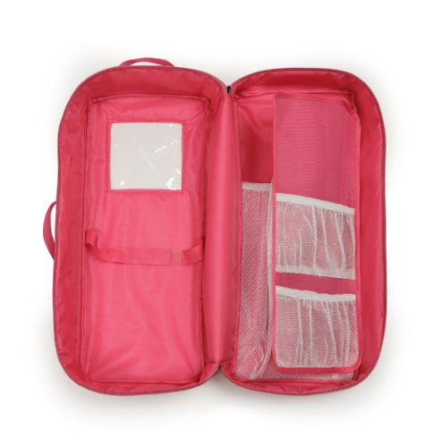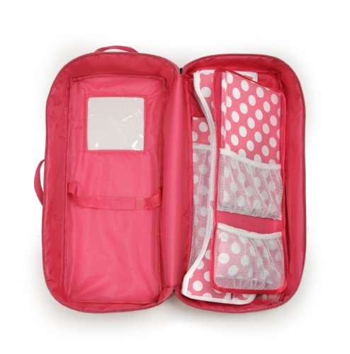 -. Title : Badger Basket Doll Travel Case with Bed and Bedding - Dark Pink (fits American Girl dolls)