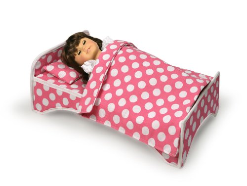 When it's time to travel, little mommies can do it in style with the Badger Basket Doll Travel Case with Bed and Bedding. This handy travel case provides a place to store a favorite doll along with everything needed to have hours of fun. Perfect for 18-inch dolls, this soft case features a travel bed, pillow, and blanket, along with plenty of room for accessories. The tote also features a clear vinyl window as well as carry handles and cardholder for name and address. The travel bed folds flat inside while mesh pockets inside keep clothes and smaller items. Recommended for children 3 and up. Badger Basket Company For over 65 years, Badger Basket Company has been a premier manufacturer of baskets, bassinets, bassinet bedding, changing tables, doll furniture, hampers, toy boxes, and more for infants, babies, and children. Badger Basket Company creates beautiful and comfortable products that are continually updated and refreshed, bringing you exciting new styles and fashions that complement the nostalgic and traditional products in the Badger Basket line. Dimensions: 20.5L x 8.75W x 6.75 H inches. Soft travel case with included bed and accessories. Includes bed pillow and blankets. Ideal for dolls up to 18-inches. Features tote handles, card holder and front window. Recommended for ages 3 and up.