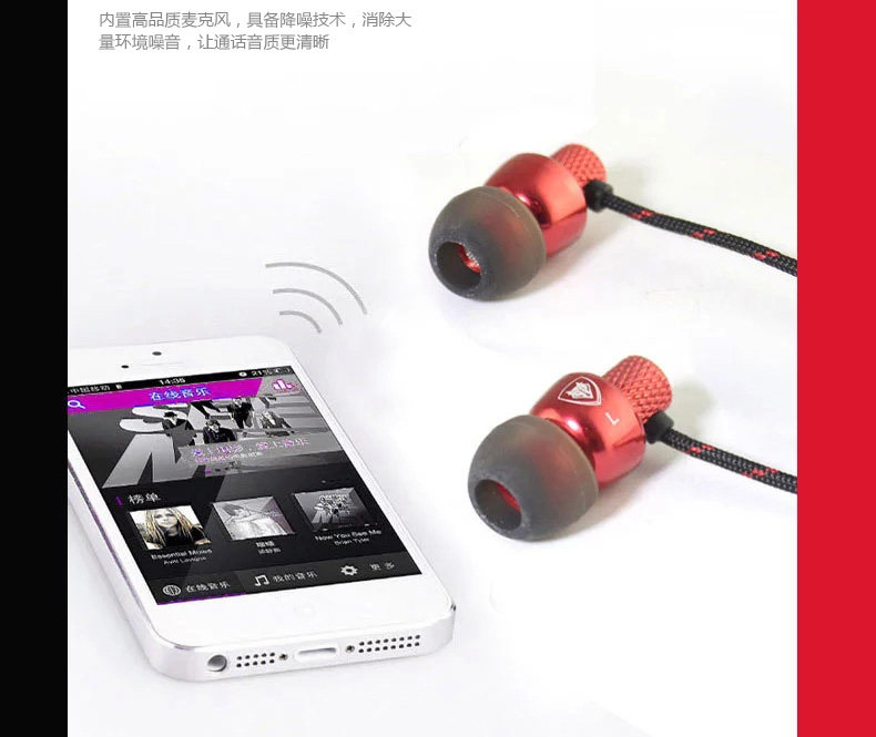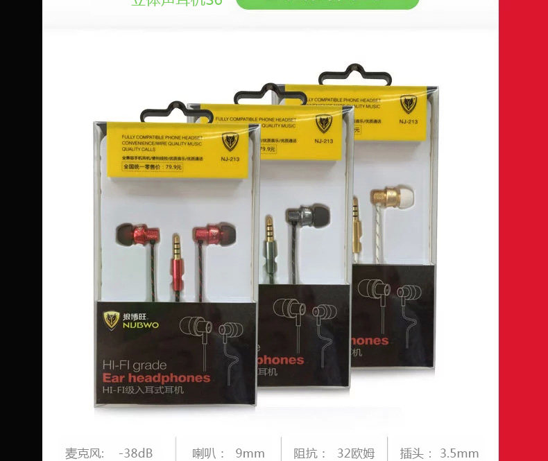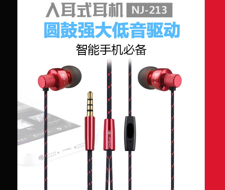 NJ-213电脑手机线控耳机入耳式重低音金属耳塞带麦