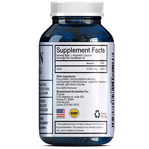 -. Title : Pure Biotin Supplements - 10000 mcg to Support Hair Growth + Clear Skin + Stronger Nails for Men and Women - Natural and Potent Supplement to Help Fight Hair Loss and Thinning Hair - by Phytoral