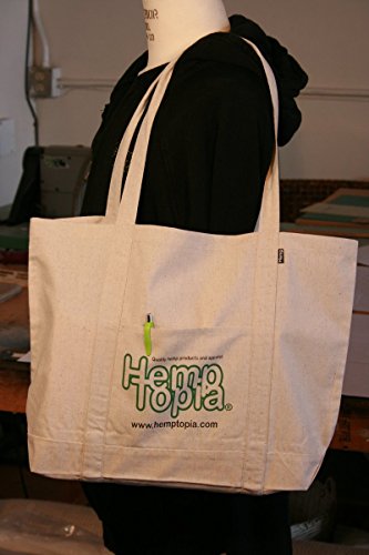 Reusable Hemp Grocery Tote Bag with Pocket & Hemptopia Logo