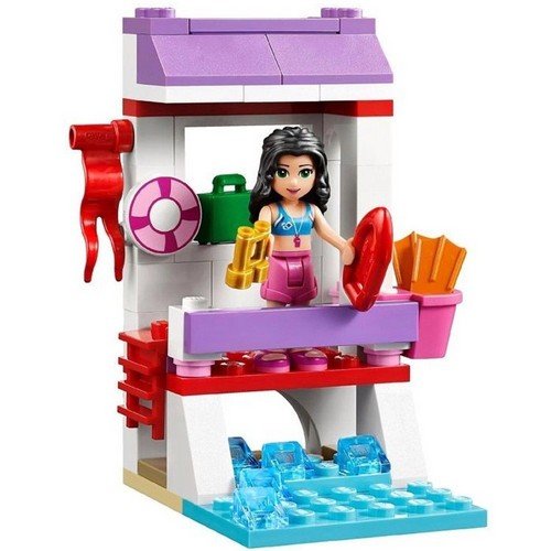 Keep swimmers safe with Emma's Lifeguard Post. Watch the waves and decide which flag to raise ? if it's red, it's dangerous; if it's green, it's safe. You decide! Then, put up the pink parasol and play with the fun accessories like the sandcastle and the bucket and spade. Later on, put on the swim flippers and have fun with the playful dolphin. This playset includes an Emma mini-doll figure with assorted accessories, and a dolphin.The Emma's Lifeguard Post playset, part of the LEGO Friends range, features a lifeguard post with green and red flags, flag post, and first aid kit. Accessories include binoculars, rescue can, orange swim flippers, sandcastle with pink parasol, and red bucket. The lifeguard post measures 9 cm (3.5 inches) high, 6 cm (2.35 inches) wide, and 5 cm (2 inches) deep.Feature