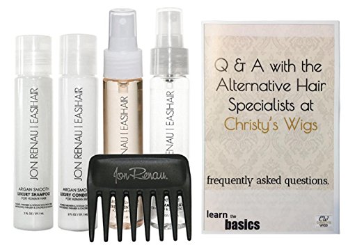 Studio : Jon Renau Christy's Wigs Publisher : Jon Renau Christy's Wigs Binding : Misc. Product Description This lot includes the BEST SELLING Gwyneth by Jon Renau Wig, 15 Page Christy's Wigs Q A Booklet, Jon Renau 2oz Travel Size Argan Smooth Luxury Shampoo, Jon Renau 2oz Travel Size Argan Smooth Luxury Conditioner, Jon Renau 2oz Heat Treat Thermal Spray, Jon Renau 2oz Argan Smooth Treatment Mist Jon Renau Wide Tooth Comb. Gwyneth by Jon Renau is a long, layered, and luxurious remy human hair wig. Supreme in every way, Gwyneth is constructed to give you all around comfort, versatility, and the most natural appearance. Featuring gorgeous layers of the finest Remy human hair, you can style it straight, wavy, or curled. The cap is 100% hand-tied, meaning each hair is individually knotted, allowing free movement and styling versatility. No matter where you part it, the full monofilament top gives a scalp-like appearance. The SmartLace front allows the freedom of styling your hair away from the face, giving you endless styling options. This top-of-the-line wig is a must-have for the woman wanting the most natural look. EXPERT TIPS STYLING IDEAS: Using the included care products specifically designed for factory chemically processed hair will extend the life and maintain the quality of your hairpiece or wig. More detailed information are found in the 15 page "Q A with the Alternative Hair Specialists at Christy's Wigs" booklet. This guide provides you with answers to all the basics you need to know in regards to: care for your alternative hair product, extending the life of your system, and information including: comfort and answers on how to make your wig look more natural. For optimum results, we recommend you wash, customize, and style your human hair wig before wearing. Human hair is not intended to wear out of the box. 0