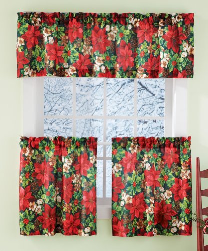 Colorful 3-pc. window curtain set includes a valance and a pair of tiers, all with rod pocket tops. Machine wash. Polyester; imported. Valance: 59"W x 15"L; each tier: 29 1/2"W x 24"L.Feature