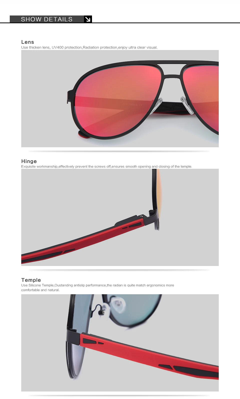 Sunglasses function:UV400,Anti-glare,Anti-radiation