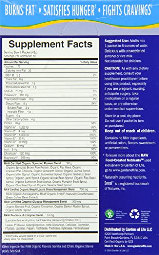 -. Binding : Health and Beauty -. Brand : Garden of Life -. EAN : 1144155706413 -. Feature : Support healthy blood sugar levels and burn fat naturally with the power of svetol green coffee bean extract, raw food created chromium, organic cinnamon, and organic sprouted grains / Help regulate your cortisol levels and manage stress related cravings with raw organic ashwagandha / Build lean muscle mass, help repair it after work-outs and sustain it on a sensible meal plan with 28 gram of raw certified organic plant protein / Naturally filling and satisfies hunger with raw organic soluble and insoluble fiber from certified organic grains, seeds, legumes and fruits / Promotes healthy and comfortable digestion and elimination with live probiotics and enzymes -. IsAdultProduct : 0 -. Label : Garden of Life -. LegalDisclaimer : Actual product packaging and materials may contain more and different information than what is shown on our website. We recommend that you do not rely solely on the information presented and that you always read labels, warnings, and directions before using or consuming a product. Please see our full disclaimer below. -. Manufacturer : Garden of Life -. Model : hhh-kyyy-tra-rat8358 -. MPN : 658010117432 -. NumberOfItems : 1 -. PackageQuantity : 1 -. PartNumber : 658010117432 -. ProductGroup : Health and Beauty -. ProductTypeName : HEALTH_PERSONAL_CARE -. PublicationDate : 2014-12-12 -. Publisher : Garden of Life -. ReleaseDate : 2015-03-19 -. Size : 10 Packets -. Studio : Garden of Life -. Title : Garden of Life Raw Fit Protein Tray Powder, Vanilla, 10 Count -. UPC : 658010117432