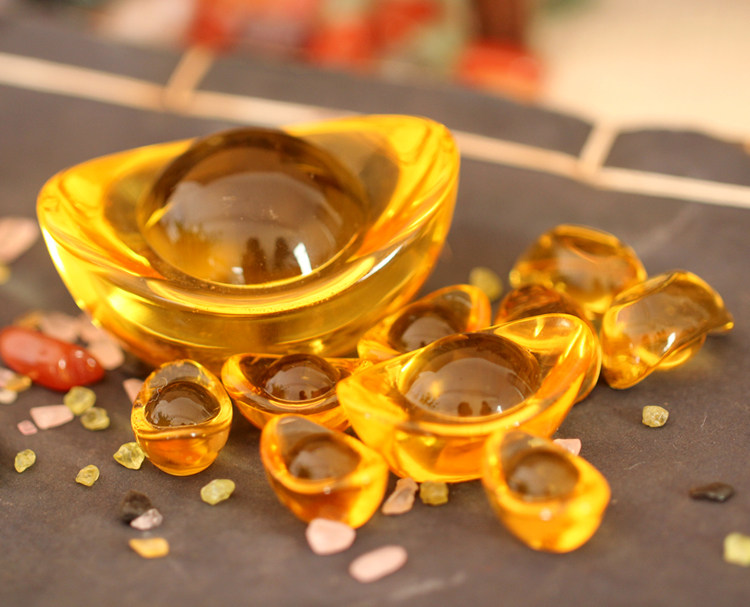 大小号黄水晶金元宝摆件招财进宝旺财转运家居风水装饰摆设