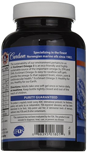ReleaseDate : 2017-04-26 Studio : Carlson Labs Publisher : Carlson Labs Binding : Health and Beauty Product Description Eco Smart Omega-3 is an eco-friendly, Friend of the Sea-certified product made from a highly sustainable calamari species. Each soft gel provides 500 mg of the important omega-3s EPA and DHA, which support heart, brain, vision, and joint health. ? 0