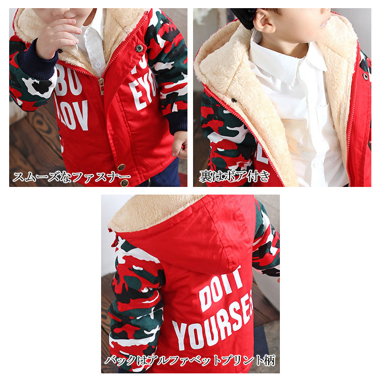 | 肌にぴったりあって、しっかり冷気をシャットアウトもっと暖かいです。内側は厚手起毛でふわふわでモコモコあたたかい。袖のリブや裏ボアで防寒対策です。厚手の裏起毛フード付き、お子様を頭からしっかり守ってくれます。お出かけにも、プレゼントにもピッタリです。 | |