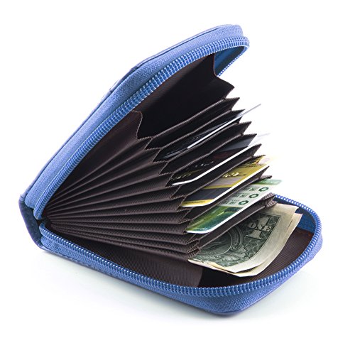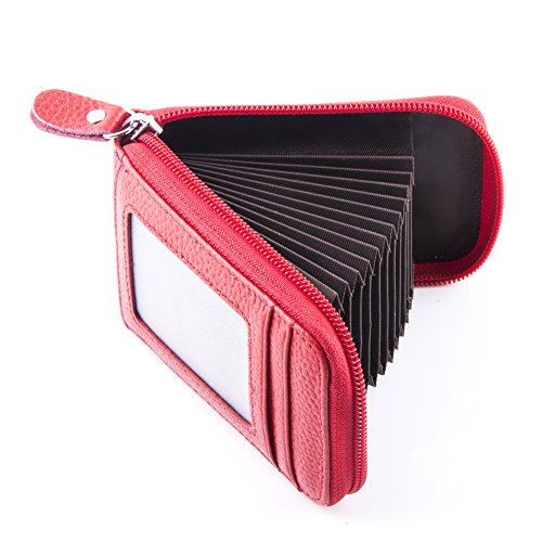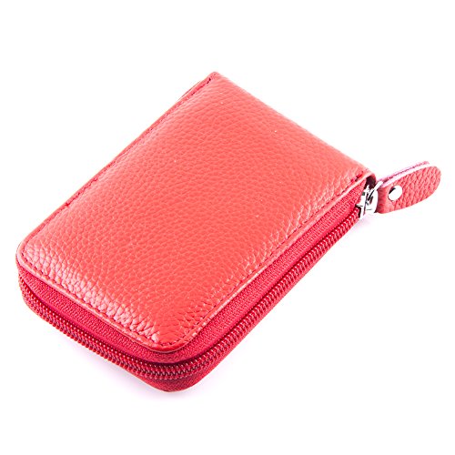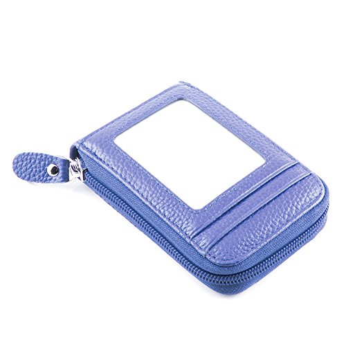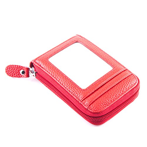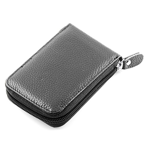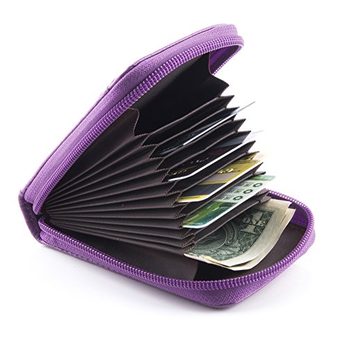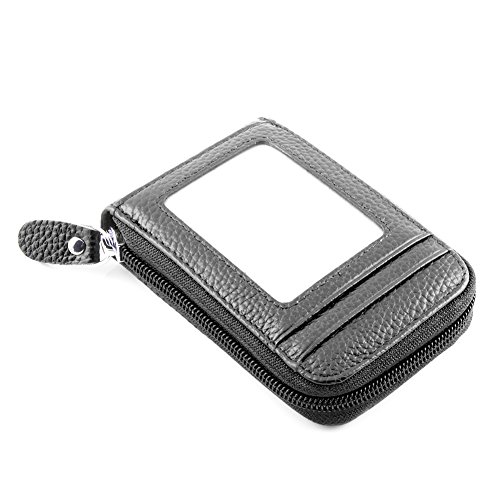 Details Material: genuine leather Closure: metal zipper Inside: expandable card slots Pockets: 14 pockets in total Size: 4.25 x 2.75 x 0.75 (H x L x W) Good to hold credit cards, change, coins, receipts, social security card, etc.