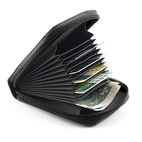 Studio : LYCSIX66 Publisher : LYCSIX66 Binding : Apparel Product Description Carry your cards way more organized, stylish and safe with this leather accordion cards case. As result of RFID shielding system, this case can protect your cards from unauthorized scanning. Its inside features 10 card slots and two slots for change, coins, receipts, social security card and more; and outside features two additional slots Note that the front window slot is NOT big enough to fully cover American ID or driver's license