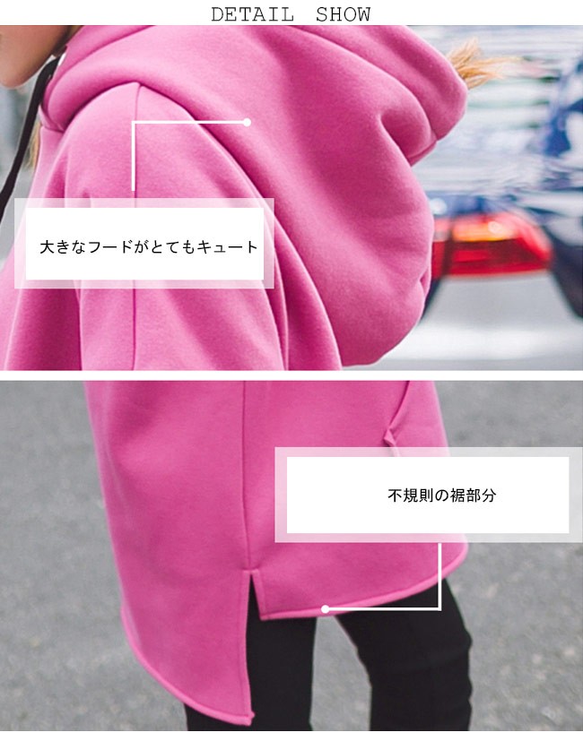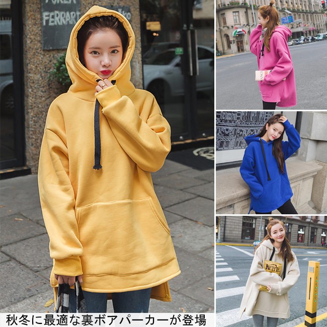 裏ボアパーカー レディース フーデッド 長袖 女の子 スウェット 無地プルオーバー トップス 秋冬 春秋 フード付き カジュアル ゆるシルエット オシャレ スリット 不規則裾