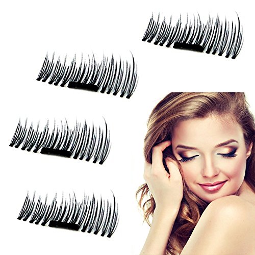Arishine Magnetic False Eyelashes, 0.2mm Ultra-thin 3D eyelashes, Handmade for Natural Look (4 Pcs)