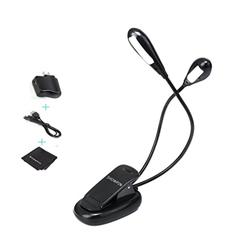 LED Reading Lamp Showpin Night Clip Book Light Dual Head Rechargeable 8 LED Portable Music Stand Light,Easy Clip On Bed,Dimmable Brightness Flexible USB Night Light,Christmas Gift for Kids, Bookworms