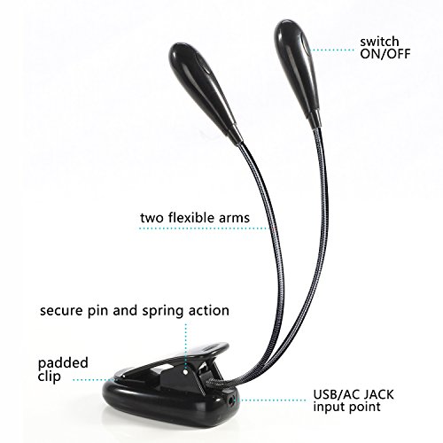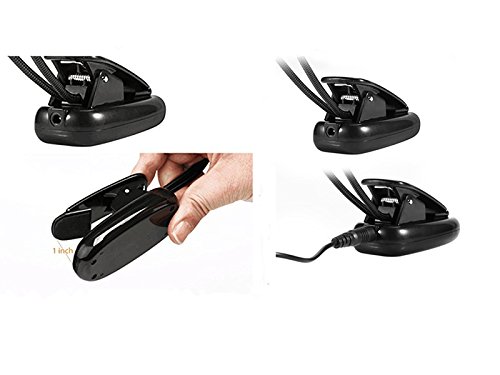- The clamp itself opens up to 2.3 inches wide and flexible “goose-neck” design. Allow you to adjust the light just where you want it, adjust the neck horizontally, vertically, or tilt for various angles and better direction of illumination.