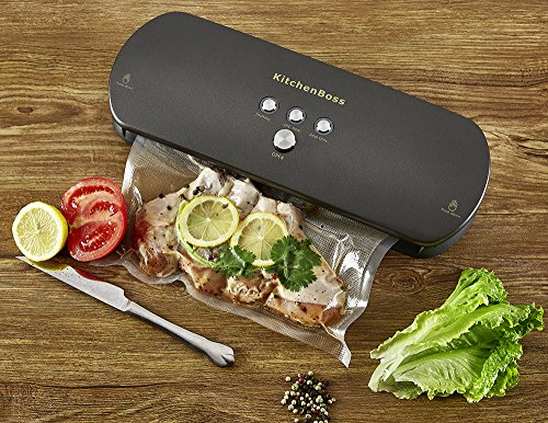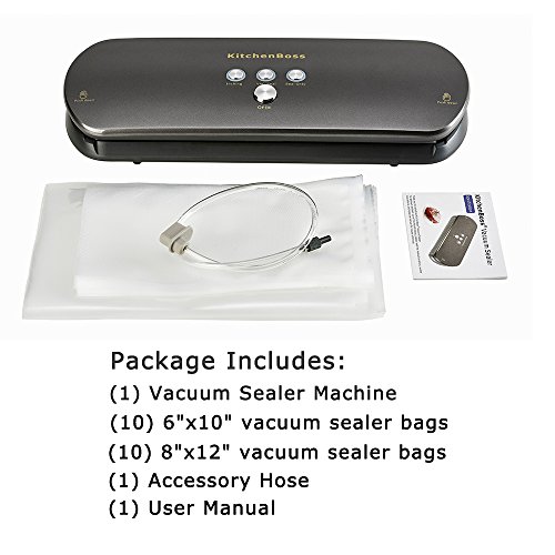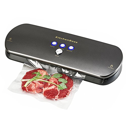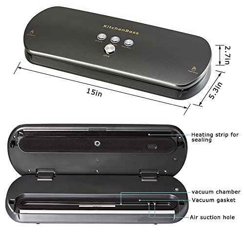- SUPER AIR SUCTION: Portable size with super air suction. By using a commercial grade vacuum pump and highly effective motor, Kitchenboss vacuum sealer works with strong air.