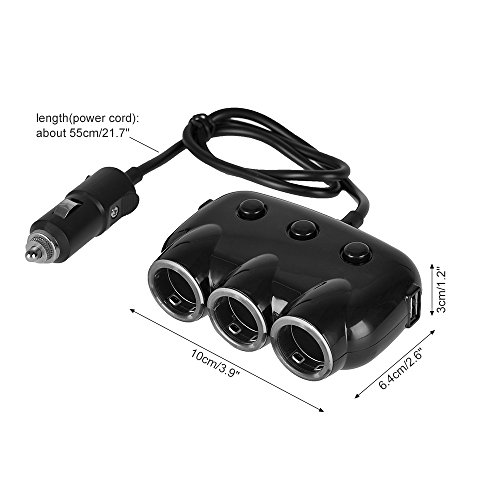 ALLCACA 3-socket Car Cigarette Lighter Splitter DC Outlet Splitter Car Power Adapter with Dual USB Charging Ports for iPhone Huawei iPad Samsung and More, Black