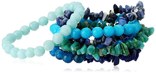 -. Title : Set of 6 Multi-Stone Stretch Bracelet