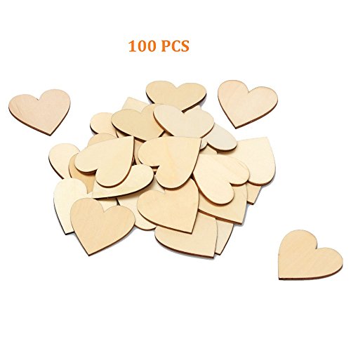 RERIVER 2-Inch Unfinished Wooden Heart Blank Wood Cutout Heart Slices Discs DIY Crafts(100pcs)