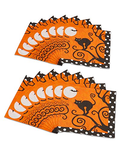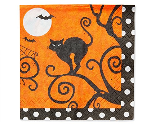 - Frightfully fancy Beverage napkins feature bats, a full moon and a black cat, on an Orange background with a black-and-white polka dot edge
