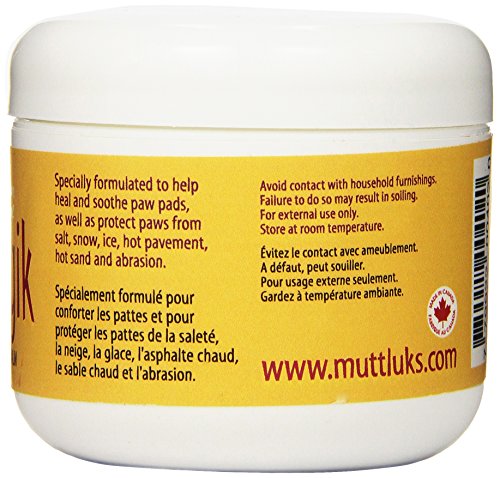 -. Binding : Misc. -. Brand : Muttluks -. Color : None -. EAN : 0779922004020 -. Feature : Provides protection against salt, snow and ice / Made with natural ingredients which include beeswax sweet almond oil, shea butter and coconut oil / This product is intended for use on dog paws only / Proudly developed and made in Canada / Avoid contact with household furnishings; failure to do so may result in soiling -. Label : A.C. Kerman - Pet Products -. Manufacturer : A.C. Kerman - Pet Products -. Model : ML-PM -. MPN : ML-PM -. NumberOfItems : 1 -. PackageQuantity : 1 -. PartNumber : ML-PM -. ProductGroup : Pet Products -. ProductTypeName : PET_SUPPLIES -. Publisher : A.C. Kerman - Pet Products -. Size : 3 oz (75 ml) -. Studio : A.C. Kerman - Pet Products -. Title : Muttluks Pawmagik All Natural Paw Balm, Tub Single, 3-Ounce -. UPC : 779922004020
