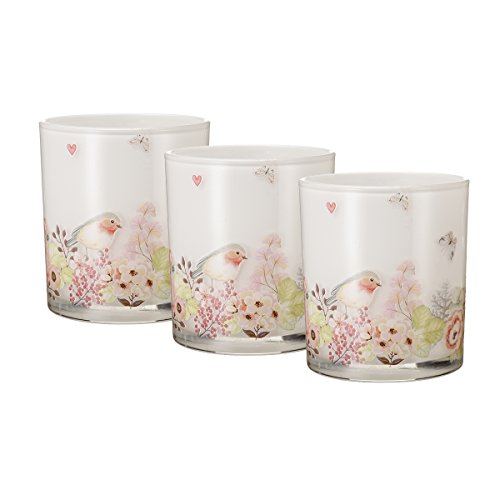 V-More Bird and Flowers Decal Frosted Glass Candle Holder Votive Candle Holder Tealight Holder 3.54-inch Tall for Home Decor Wedding Party Celebration (Set of 3) (Flower and Bird)