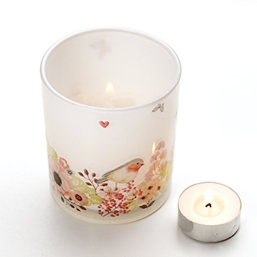 ❤ ANTIQUE DECAL DESIGN: The glass is frosted with a decal of bird and flowers tightly attached to the surface of the glass by some special craft. It’s so beautiful and can easily match with any event or decorative style. When you light up the candles, the warm light throughout the pattern makes you feel romantic and joyful.